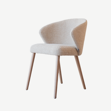 De Popsy eetkamerstoel van Passe Partout heeft een kuipvormige zitting bekleed met stof in beige en rust op slanke houten poten. Het zachte, afgeronde design omsluit je op een natuurlijke manier en biedt uitstekend comfort tijdens lange diners of gezellige avonden. De subtiele rondingen en elegante lijnen geven de stoel een luchtige en verfijnde uitstraling, terwijl de stevige constructie garant staat voor duurzaamheid.