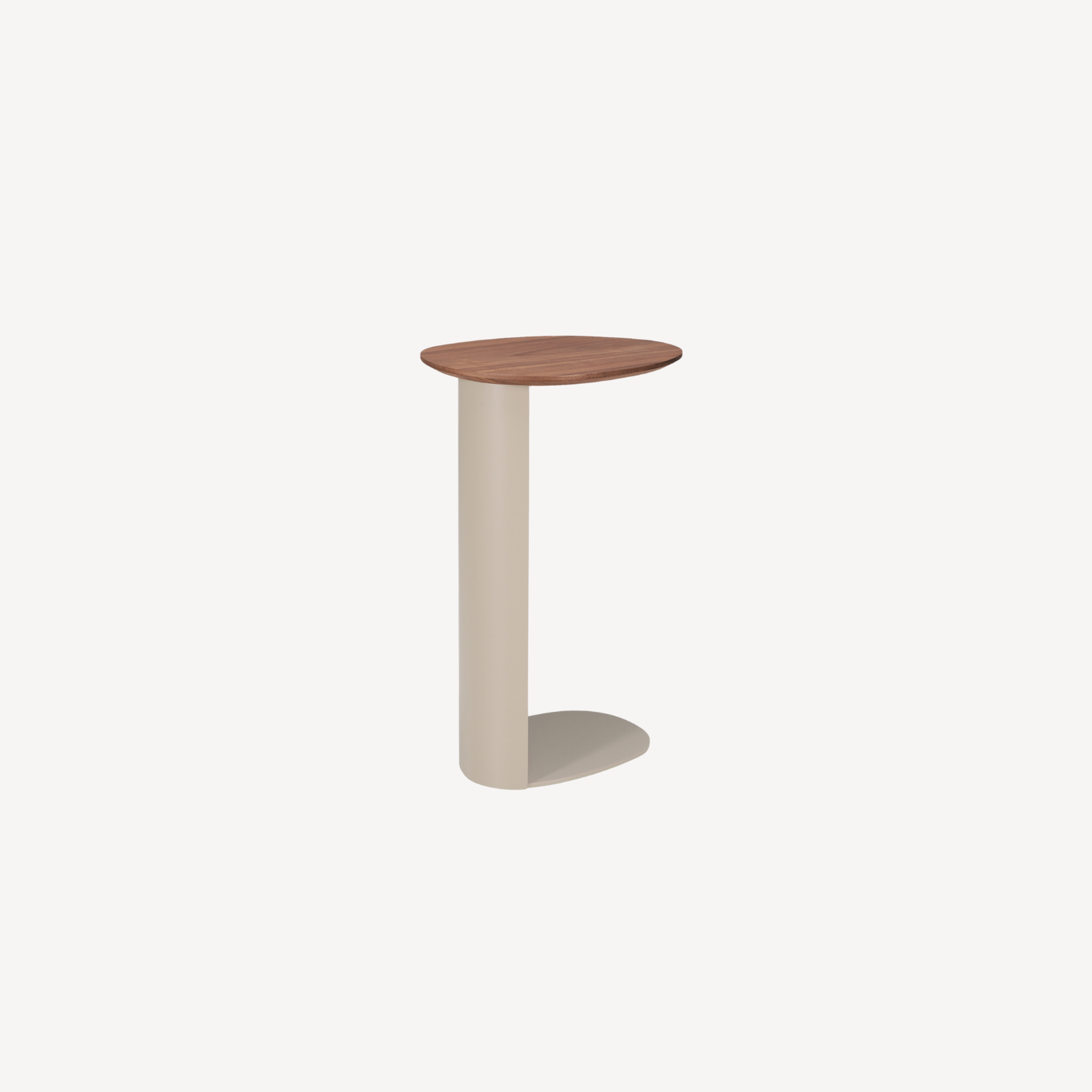 Het blad is uitgevoerd in warm walnoot fineer, een materiaal dat direct sfeer en karakter toevoegt. De natuurlijke houtnerf zorgt voor diepte en een luxe uitstraling, terwijl het fineer een verfijnde en rustige basis vormt. De walnoottint combineert prachtig met de crème kleurige poot, die het ontwerp een lichte en zachte uitstraling geeft. Dit contrast maakt de tafel zowel elegant als veelzijdig en zorgt ervoor dat hij eenvoudig te integreren is in verschillende interieurstijlen, zoals modern, Scandinavisch, Japandi of hotel chique.
